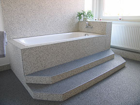 Starke Temperaturschwankungen, Hitze, Kälte und Frost - Kein Problem für Fußböden aus Quarzkies oder Marmorgranulat! RISTO Steinfussboden eignet sich besonders gut im Außenbereich, z.B. auf der Terrasse oder dem Balkon. Er ist frostsicher und rutschhemmend.